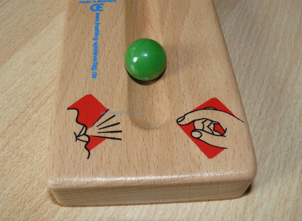 Das Material ist von ausgezeichneter Qualität, das Holzbrett absolut gratfrei und poliert. Schnell ist da der erste Finger an der Kugel um die Funktionsweise auszuprobieren, schnell wollen gleich mehrere Spieler „trainieren“. Und ebenso schnell ist dann auch eine Partie vorbei, die ja eben nur aus dem Schnippen, Schubsen oder Pusten einer kleinen Kugel besteht. Dies gefällt aber nicht nur Erwachsenen –kleinen Kindern noch viel mehr, die die Murmel auch gerne zum freien Spiel verwenden.