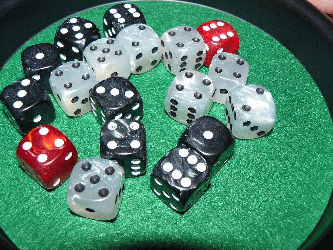 Es empfiehlt sich, den Würfelteller auf eine weiche Unterlage zu stellen (z.B. eine dicke Tischdecke), um das Klappern zu reduzieren. Wird mit vier oder fünf Mitspielern gespielt, ist darauf ohnehin nicht viel Platz für die bis zu 20 Würfel.