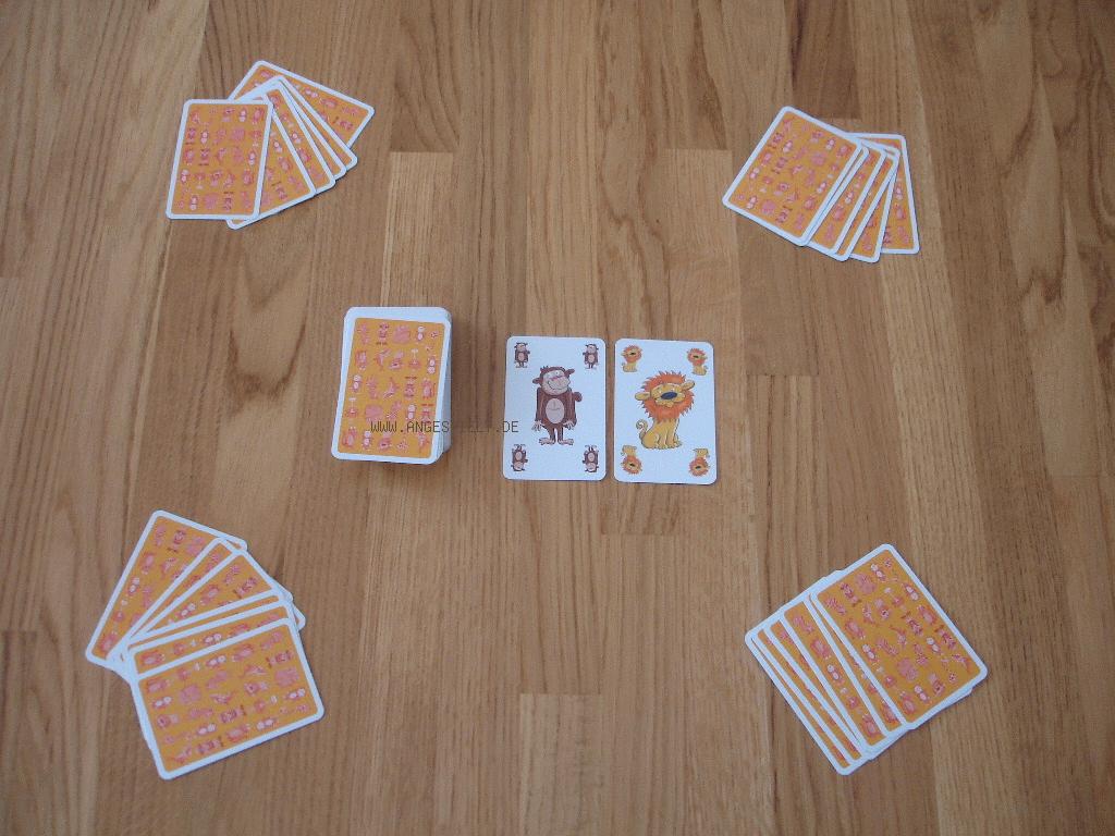 Legt also ein Spieler eine Tiergruppenkarte auf einen der beiden Ablagestapel, so darf er bestimmen, welche Tierart ab sofort dort abgelegt werden muss. Wenn ein Spieler keine Karte mehr ablegen kann, so ist er erstmal raus aus dem Spiel. Die verbleibenden Spieler spielen noch so lange weiter, bis am Ende nur noch ein Spieler übrig bleibt. Dieser Spieler bekommt die beiden Ablagestapel und legt diese vor sich ab. Danach beginnt eine neue Runde.