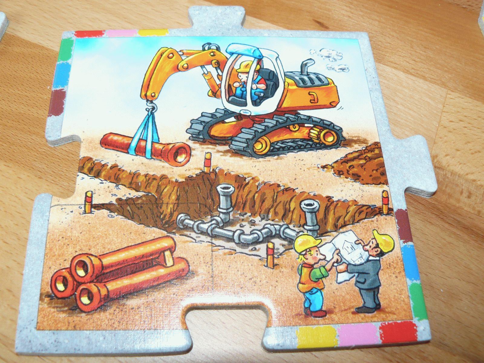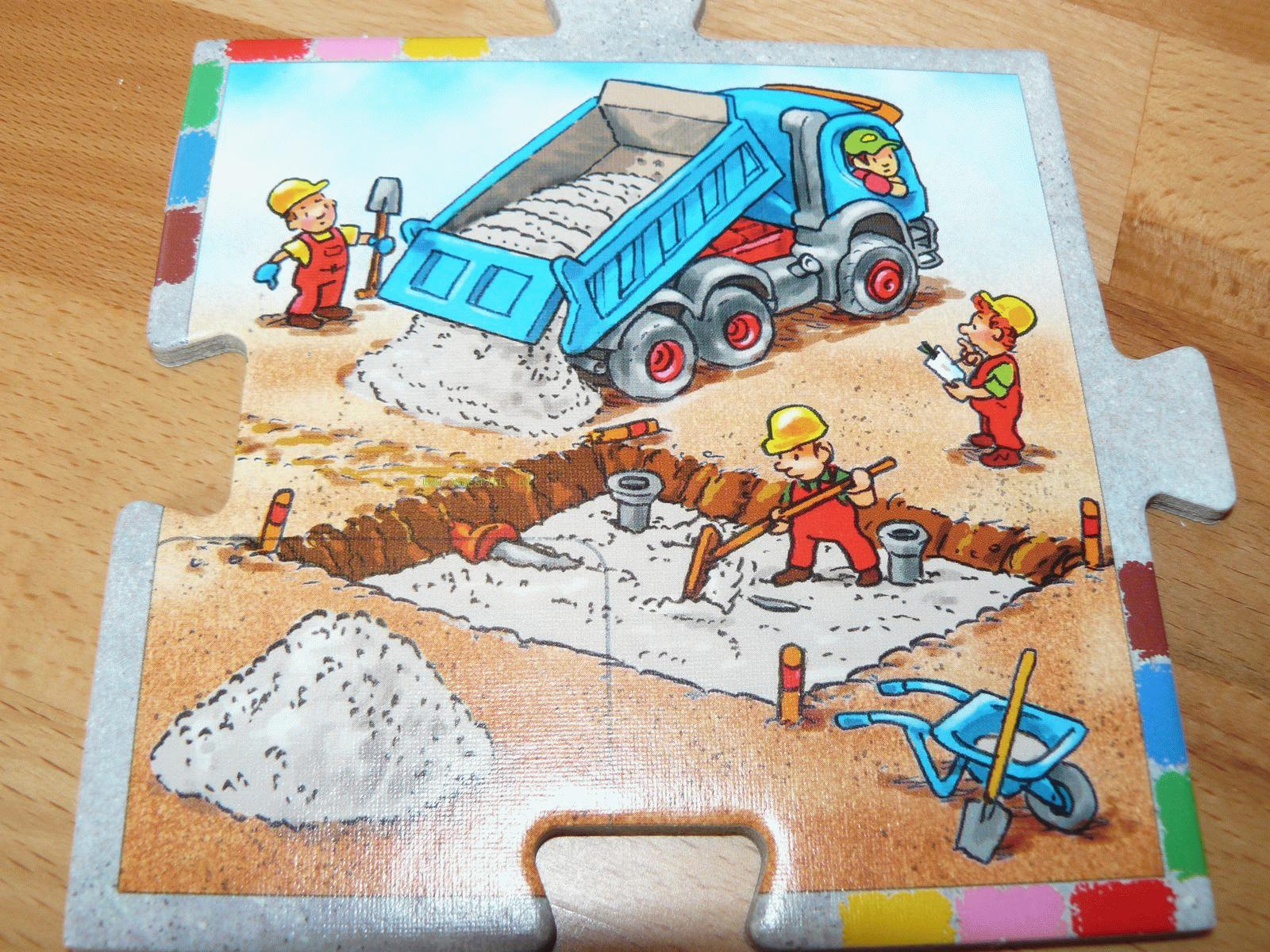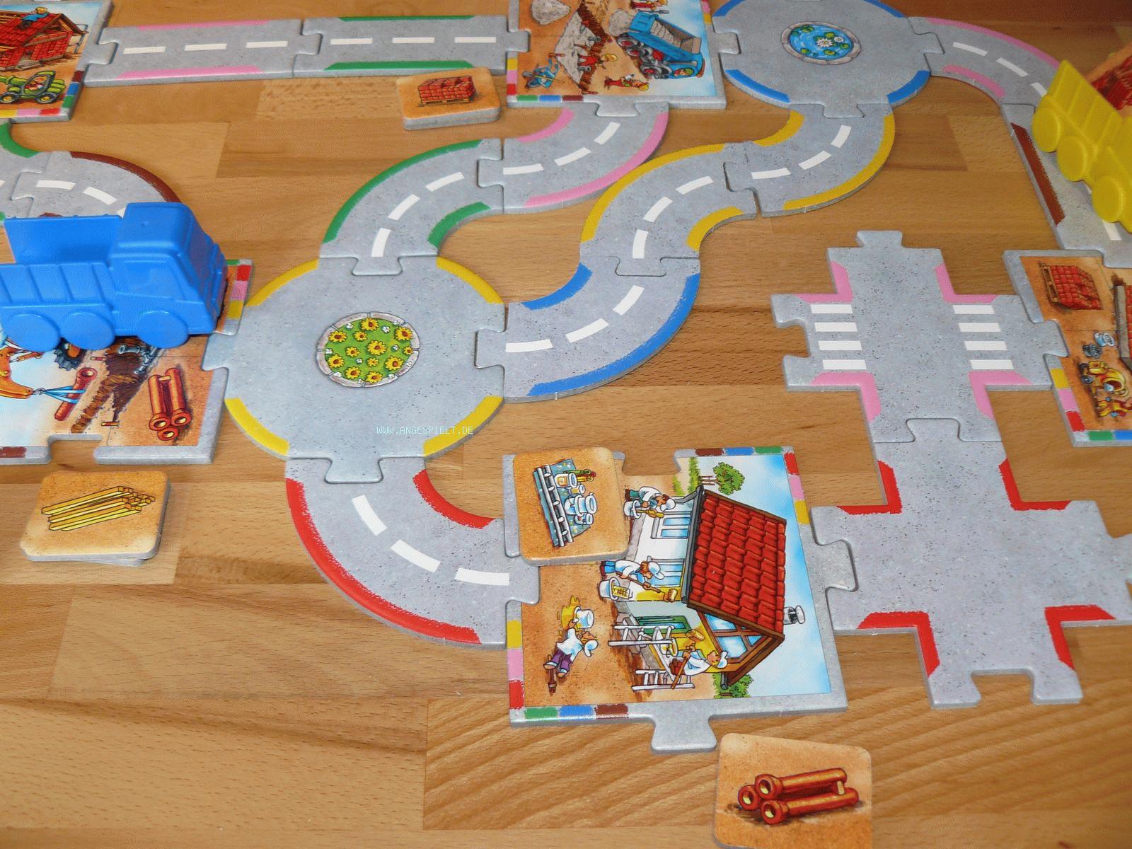Mit besonders dicker Pappe und zwei großen Kunststoff-Lastwagen sollen bereits Zweijährige spielerisch an größere Aufgaben herangeführt werden. Bis zu sechs verschiedene „Baustellen“ werden mit 24 Straßenteilen miteinander verbunden und müssen mit den jeweils benötigten Baustoffen (Rohre, Kies, Ziegelsteine, Holz, Dachziegel, Farben/Pinsel) versorgt werden.