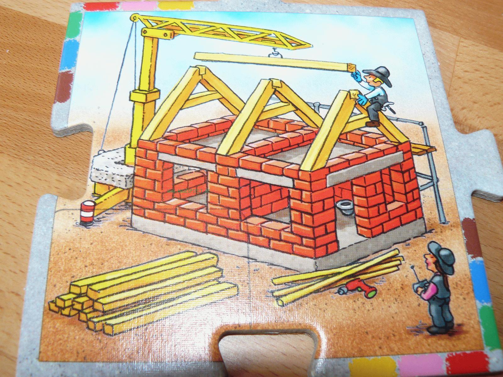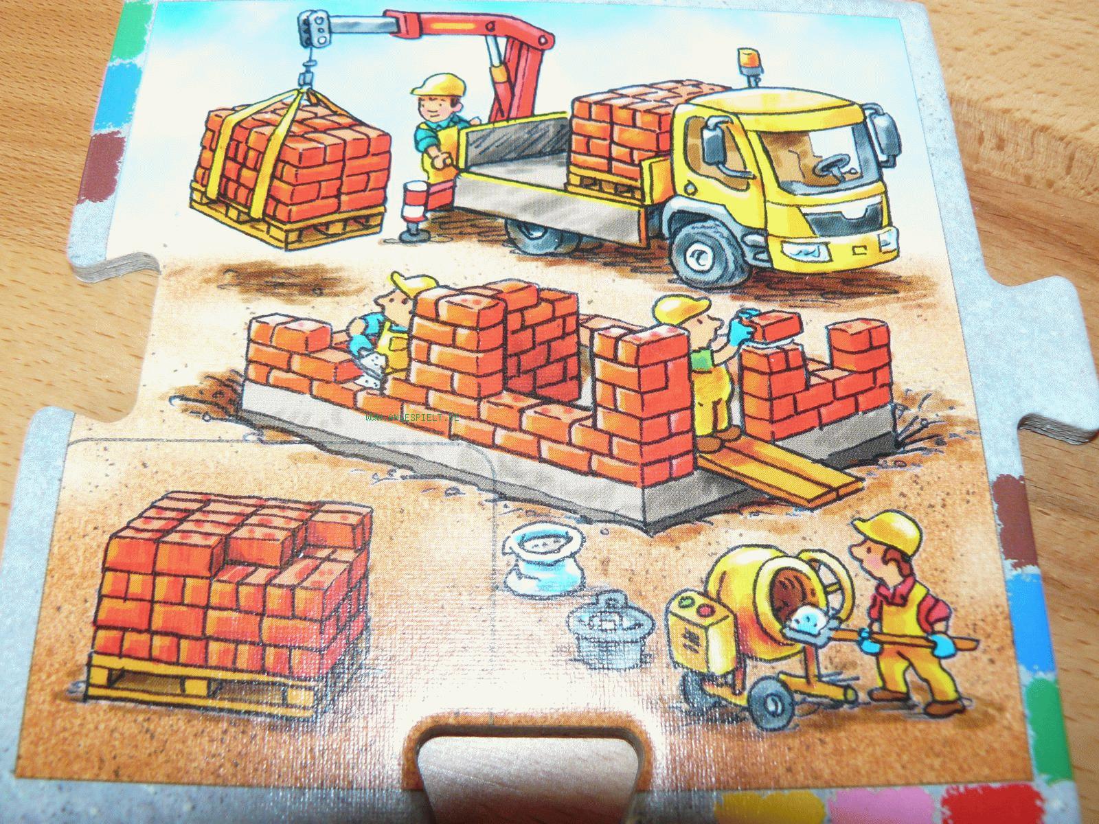 Dass dagegen auch Dreijährige mit dem Baumaterial noch nicht viel anfangen können, liegt auf der Hand. Zum Spielen ist dies aber auch nicht erforderlich, denn die entsprechenden Symbole sind groß und unmissverständlich auf den Baustellen abgebildet.