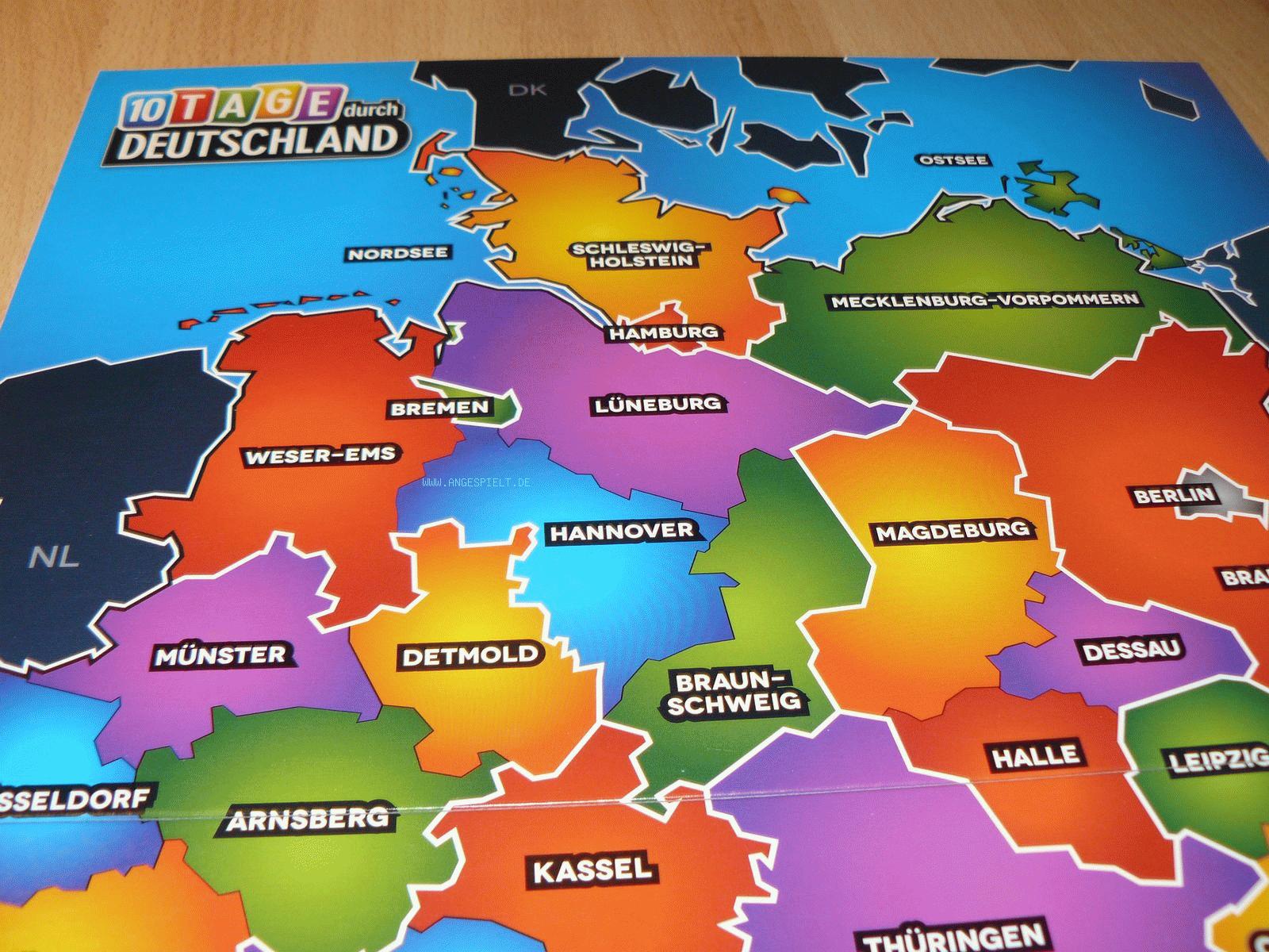 10 Tage in Deutschland ist die deutsche Ausgabe der bei Out of the Box erschienenen "10 days in..."-Serie, die im Prinzip ein grafisch aufgemotztes Racko darstellt. Es geht darum, zehn Karten in eine bestimmte Reihenfolge zu bringen.