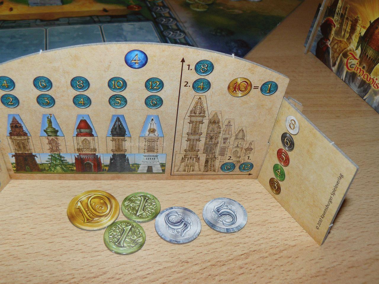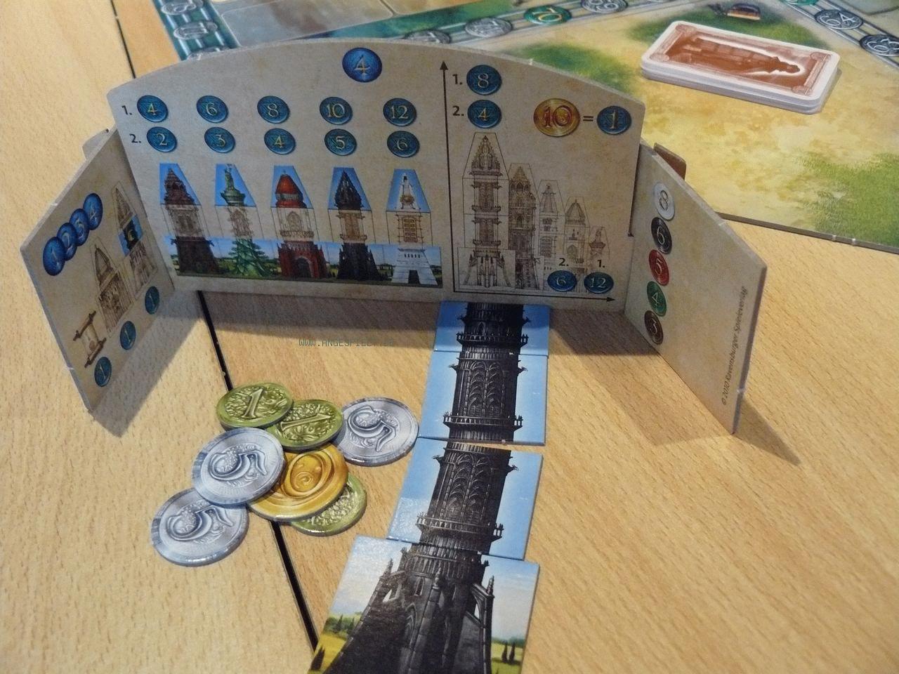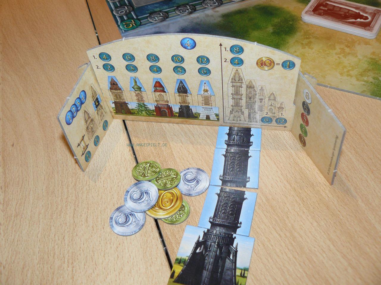 In der Profivariante kommen noch weitere Handlungsoptionen hinzu. So können weitere Handkarten gekauft oder einzelne Turmelemente nachträglich verschönert werden –was den gleichen Effekt hat wie die Goldverzierungen.