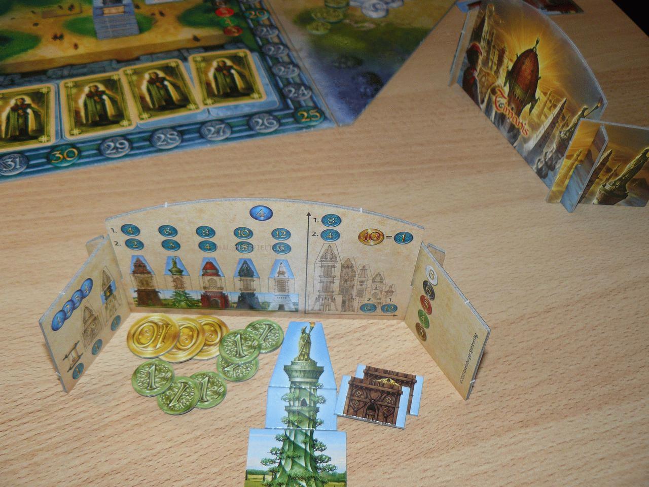 Wer jedoch die starken Handfarben früh einsetzt, um zumindest Basis- oder Spitzenteile zu sichern, legt eine gute Grundlage zur Turmoptimierung. Empfehlenswert ist es, anfangs viele kleine –und vor allem billige- Türme zu bauen, die ruhig nur aus Basis und Spitze bestehen können -Goldelemente sind aber auch nie verkehrt. Das Aufstocken einzelner Türme zwecks Bonuspunktgewinnung kann in der zweiten Spielhälfte erfolgen.