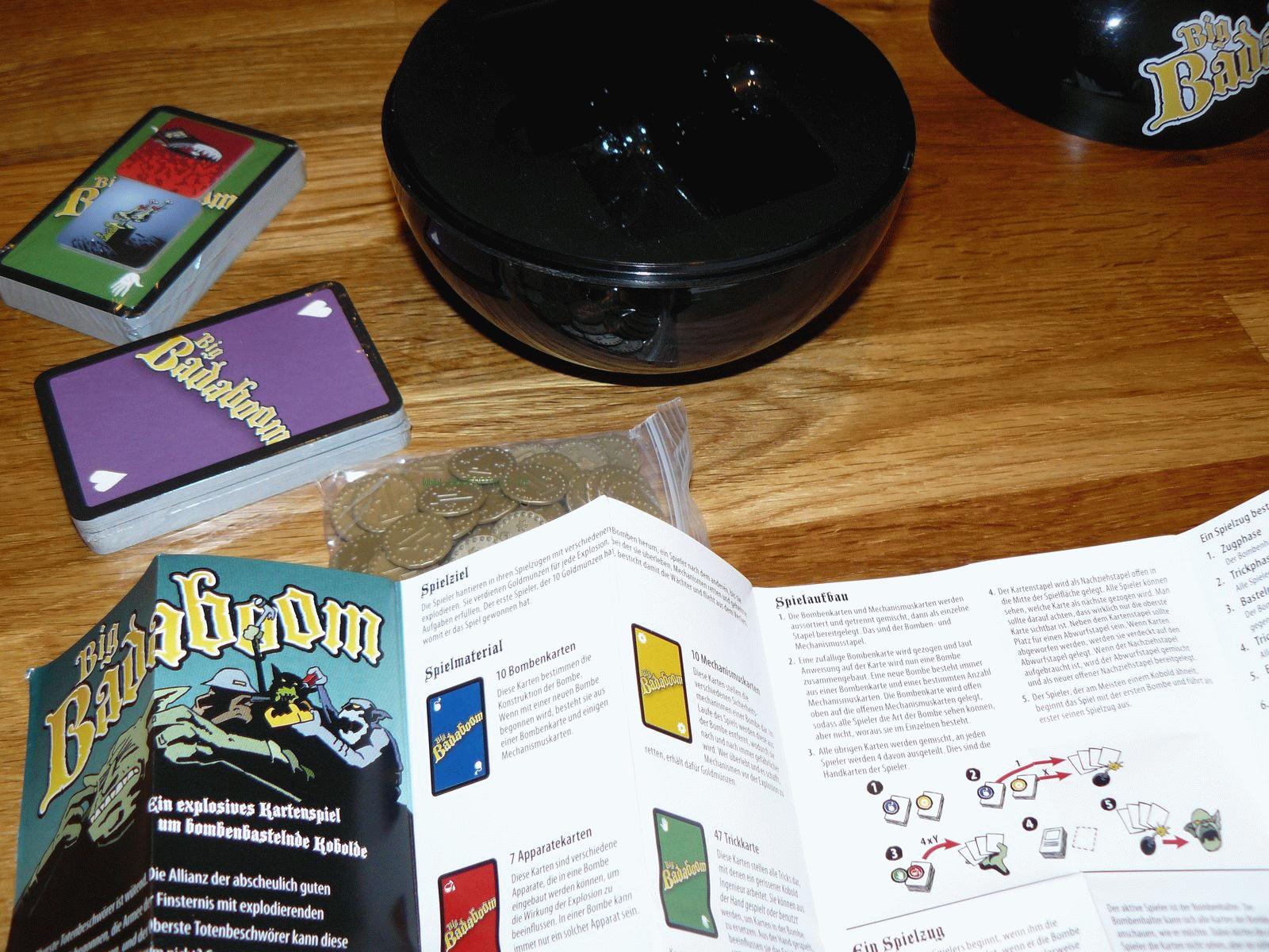 Das Besondere an Big Badaboom ist jedoch die Verpackung, die gleichzeitig als Bombe fungiert und dem Spiel eine ungeahnte Realitätsnähe Atmosphäre verschafft. Die Wirkung dieses Gadgets verpufft zwar recht schnell -ebenso wie das Interesse an diesem Kartenspiel an sich-, doch die schwarze Kugel übt eine riesige Faszination aus. Als besäße sie einen eigenen Überlebenswillen, wird sie publikumswirksam im Spielregal untergebracht und zu allerlei Schabernack verwendet. Für andere Spiele natürlich auch. Und so erlangt Badaboom nun doch noch eine Existenzberechtigung.
