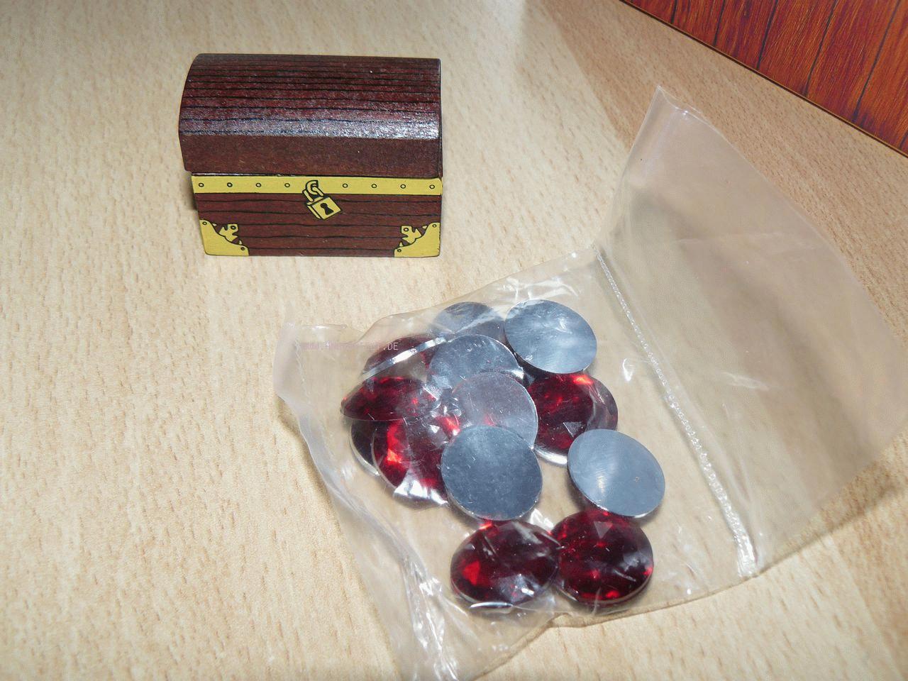 Erreicht nun ein Spieler ein Feld mit Edelsteinen, darf er sie an sich nehmen. Sobald er das Feld wieder verlässt, wird es aus dem Spiel entfernt. Wenn alle 14 Edelsteine gesammelt worden sind, gewinnt der Spieler mit den meisten. Optional kann anschließend auch wie beim Brettspiel noch versucht werden, mit der beiliegenden Wippe die Edelsteine auf das Piratenschiff (sprich: in den umgedrehten Pappdeckel) zu katapultieren.