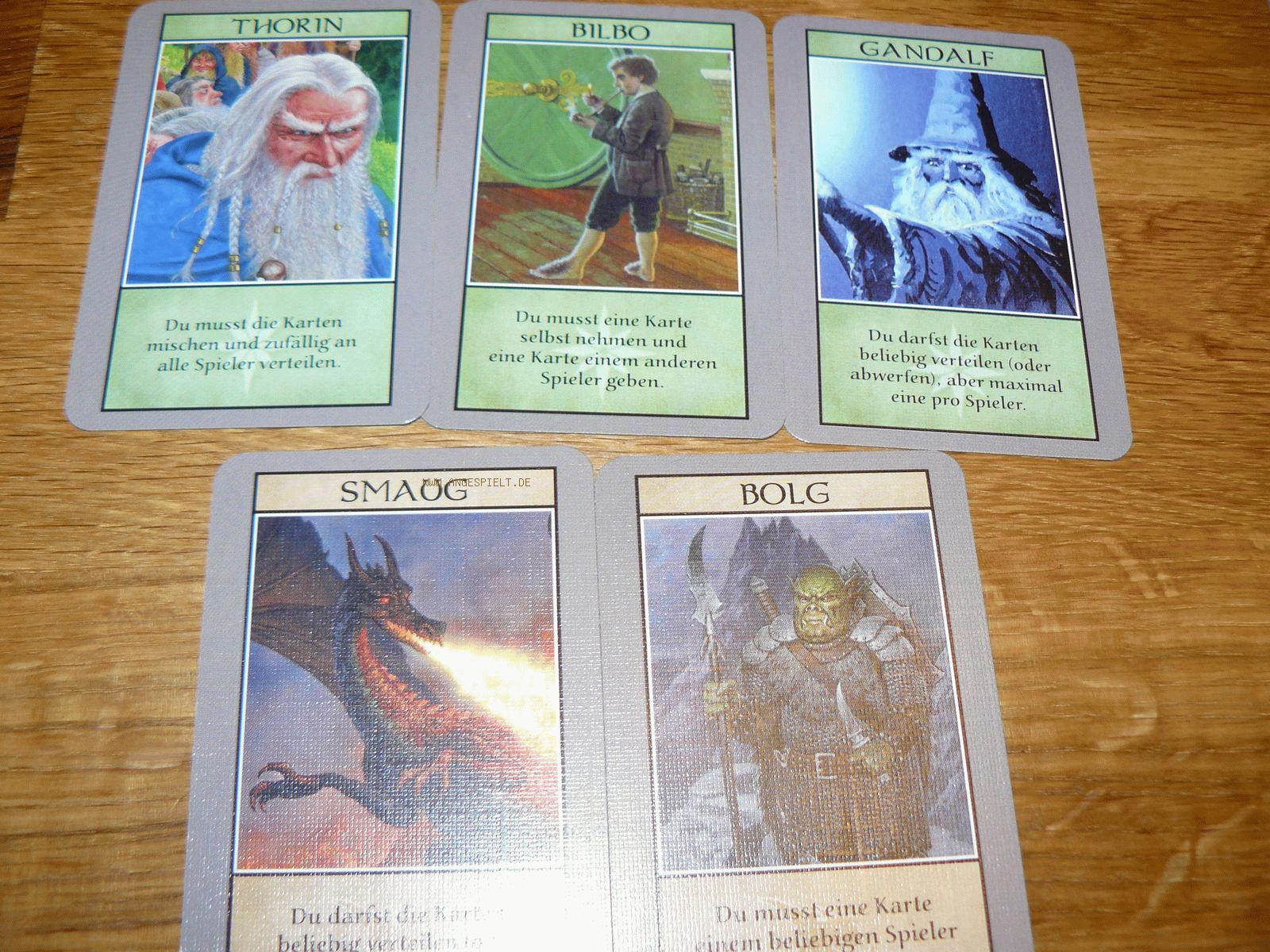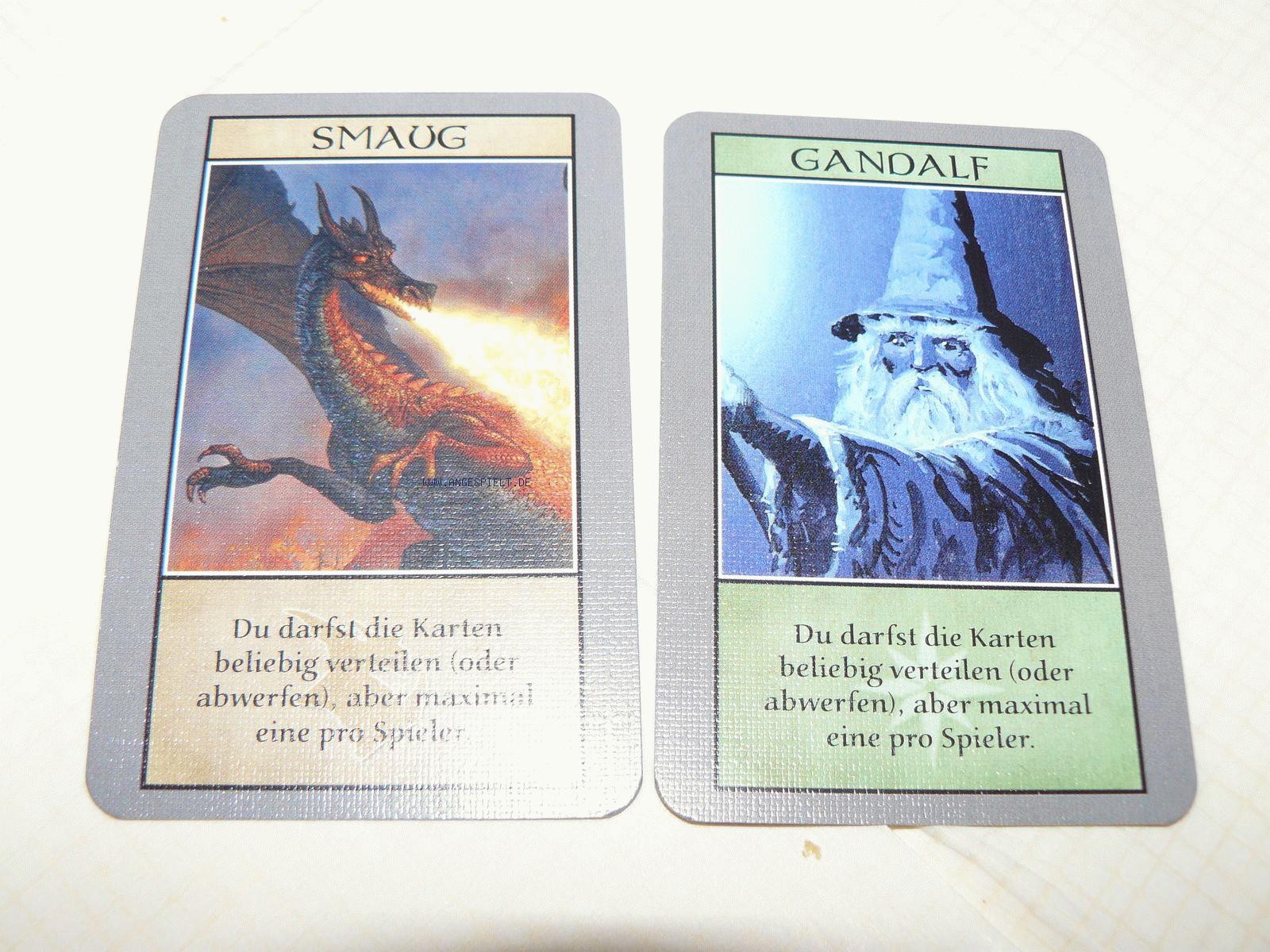 Gandalf und Smaug: Sowohl Zauberer als auch Drache dürfen weitestgehend beliebig verteilen -jedoch maximal eine Karte pro Spieler.