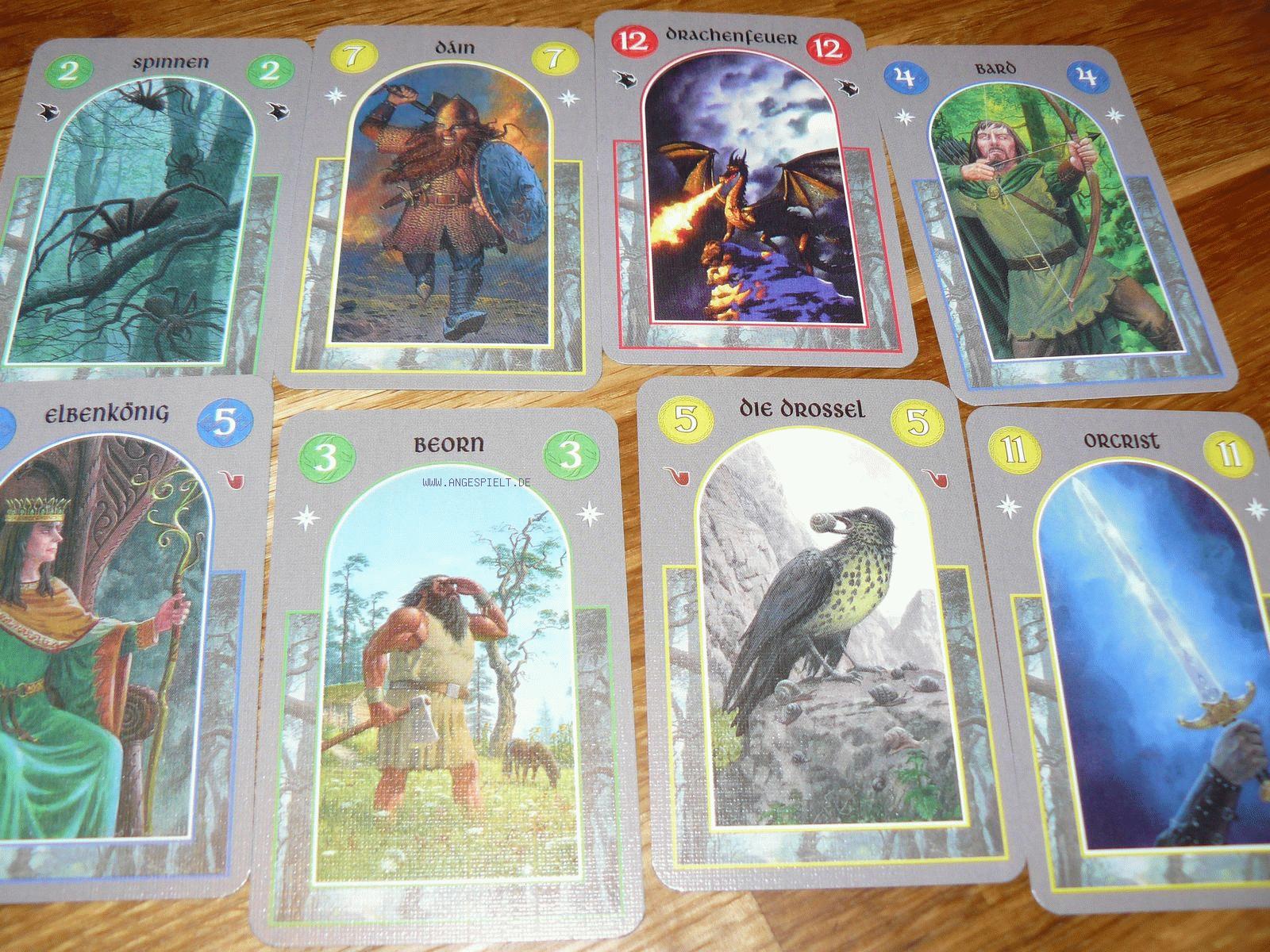 Bilbo: Der Hobbit muss eine Karte des Stichs behalten und eine weitere an einen beliebigen Spieler geben. Der Rest landet auf dem Ablagestapel.