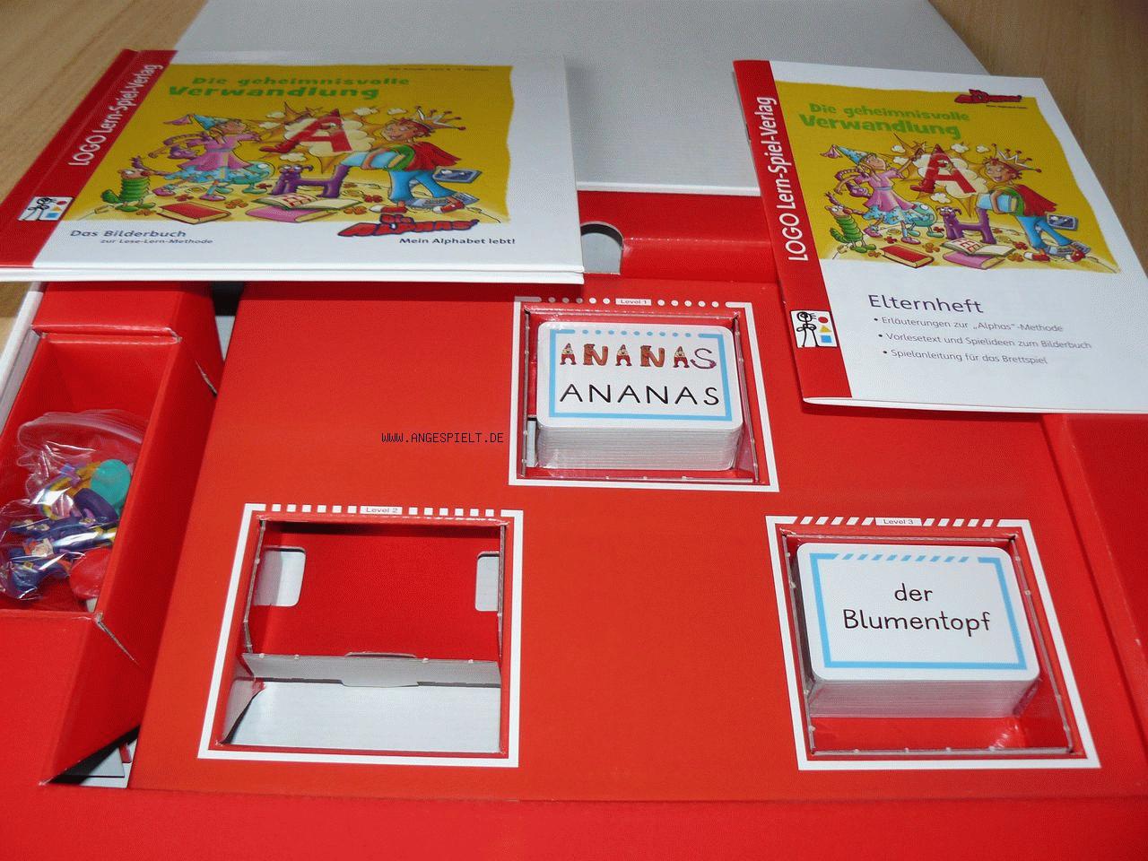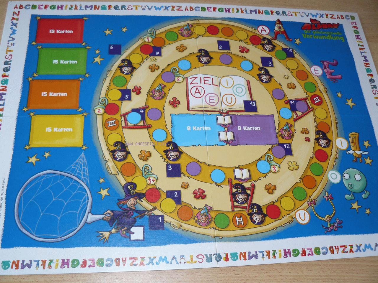 Das Brettspiel Die geheimnisvolle Verwandlung setzt die Geschichte der Alphas fort, die eine weitere Begegnung mit der Hexe Furiosa erleben. Doch da sie sich nun in Buchstaben verwandeln können, werden sie diese natürlich gut überstehen. Die Kinder lernen auf verschiedene Weisen, ihre liebgewonnenen Alphas mit den zugehörigen Buchstaben zu verknüpfen und daraus Wörter zu bilden.