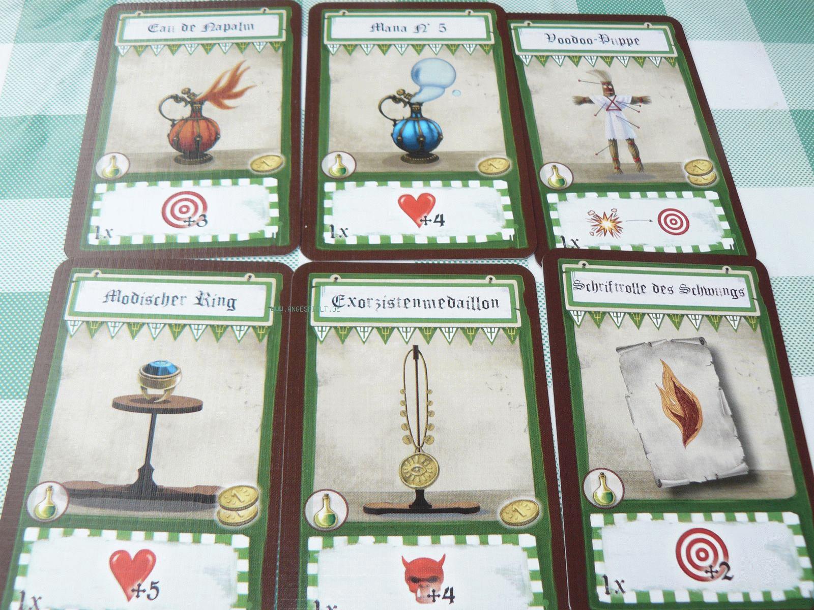 Dass der Verlag keinesfalls am Material sparen wollte, beweist auch der repräsentative Kartenturm, dessen einziger Verwendungszweck die Aufbewahrung der zahlreichen Monsterkarten und Ausrüstungsgegenstände ist. Da fällt es verhältnismäßig leicht, sich als alberner Tunichtgut Haudrauf in diese merkwürdige Fantasy-Welt hineinzuversetzen. Und dies sollte man auch unbedingt tun, denn nur mit einer Mindestportion an grenzdebilem Humor kann man Dungeon Fighter gebührend genießen.