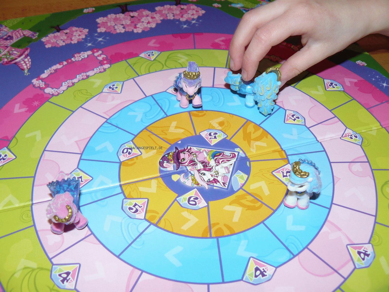 Da der gewürfelte Wert nicht voll genutzt werden muss, lassen sich Mitspieler oft gezielt eliminieren. Wer Pech beim würfeln hat, kann natürlich nicht viel machen. Außer vielleicht, beim besten Übergang einfach stehen zu bleiben und abzuwarten. Das ist enttäuschend und Hauptgrund dafür, dass die Kinder sich über die Figuren freuen und mit diesen dann etwas anderes anstellen. Da wäre das Geld direkt in Figuren besser investiert gewesen. Apropos Figuren: Leider wird immer noch darauf verzichtet, die Namen der Fillys wenigstens irgendwo zu erwähnen (oder ein Prospekt beizulegen). So schwierig kann das doch nicht sein, zumal die Babys ja einfach nur Miniatur-Ausgaben ganz normaler großer Fillys darstellen.