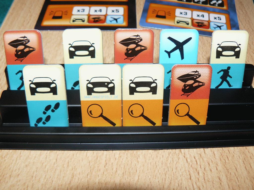 Ähnlich verhält es sich mit den Detektiven. Sie können sich entweder mit einem passenden Ticket zur nächsten Stadt begeben, oder eine Sonderaktion nutzen. Für drei bis fünf mal „Nachforschung“ muss Mister X seine Position vor zwei bis vier Zügen mit kleinen Positionsringen auf dem Spielplan markieren. Ein „Sondereinsatz“ erlaubt eine zusätzliche Bewegung, je nach Ticketzahl mit Auto, Bahn oder Flugzeug.