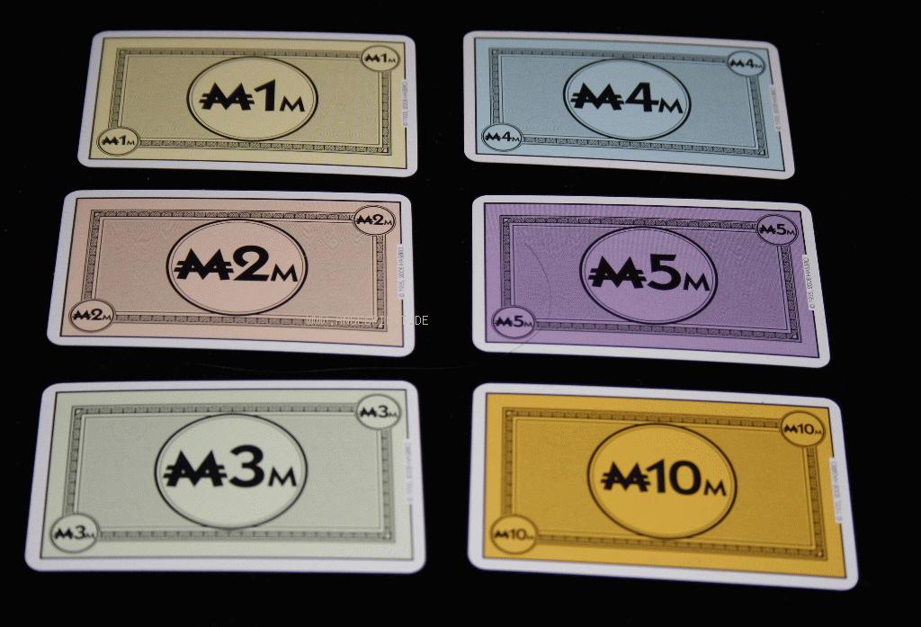Ereigniskarten können auch als Geld genutzt werden. Der entsprechend Wert ist auf der Karte aufgedruckt. Wird eine Ereigniskarte auf das Konto gelegt, verfällt das Ereignis für den Rest des Spieles.