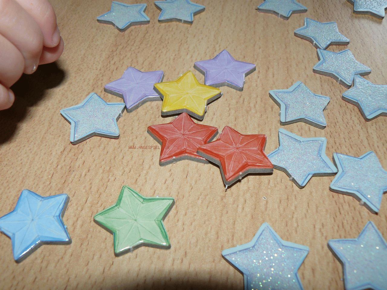 Erreicht eine Figur einen Busch, darf der Spieler einen spiegelbesetzten Zauberstab hinter die beiden Karten halten, sodass alle die Rückseiten sehen können. Stimmt das Pärchen mit dem aktuellen Auftrag überein, darf er drei beglimmerte Sterne aufdecken und alle davon behalten, die nicht den Farben der Mitspieler entsprechen. Gelingt es den Kindern, alle Aufträge zu erfüllen bevor die Sonne untergegangen ist, gewinnt der Spieler mit den meisten Sternen.