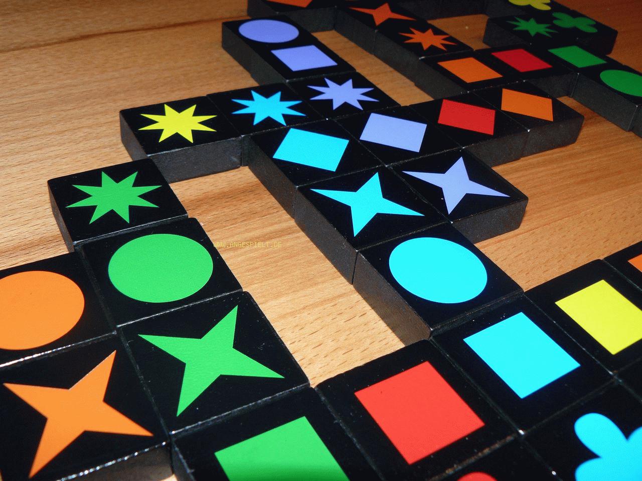 Beim Kombinationsspiel Qwirkle werden 108 bunte Steine aneinander angelegt, wofür es jedes Mal Punkte gibt. Die Spielsteine gibt es in sechs verschiedenen Farben und mit sechs unterschiedlichen Formen.
