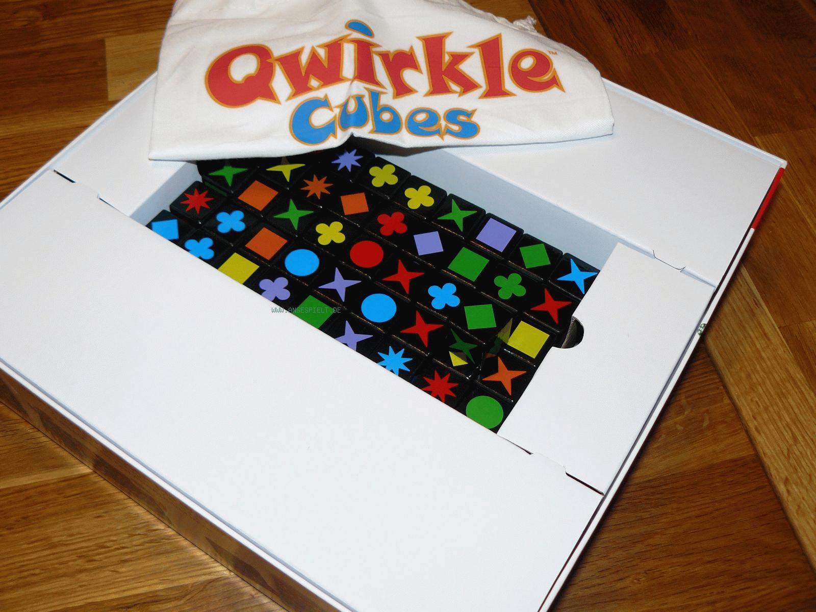 Zwei Jahre nach dem überraschenden Erfolg mit Qwirkle legt Schmidt Spiele mit der weiterentwickelten Version Qwirkle Cubes nach. Ab jetzt wird mit großen Würfeln gespielt. Die sehen aber fast genauso aus wie beim Spiel des Jahres von 2011: Jeder Holzwürfel zeigt auf seinen sechs Seiten alle verschiedenen Symbole „seiner“ Farbe.