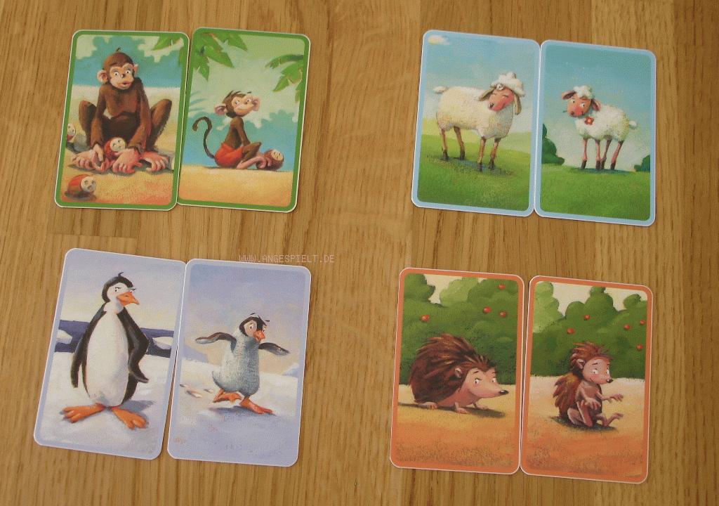 Das Erste was auffällt, ist das gute Spielmateriel. So wird sich vor Beginn des Spieles zuerst den Karten gewidmet, denn gerade für kleinere Kinder sind die Zeichnungen sehr ansprechend gestaltet und lassen Spielraum, die Kinder erzählen zu lassen was sie auf den Karten sehen.