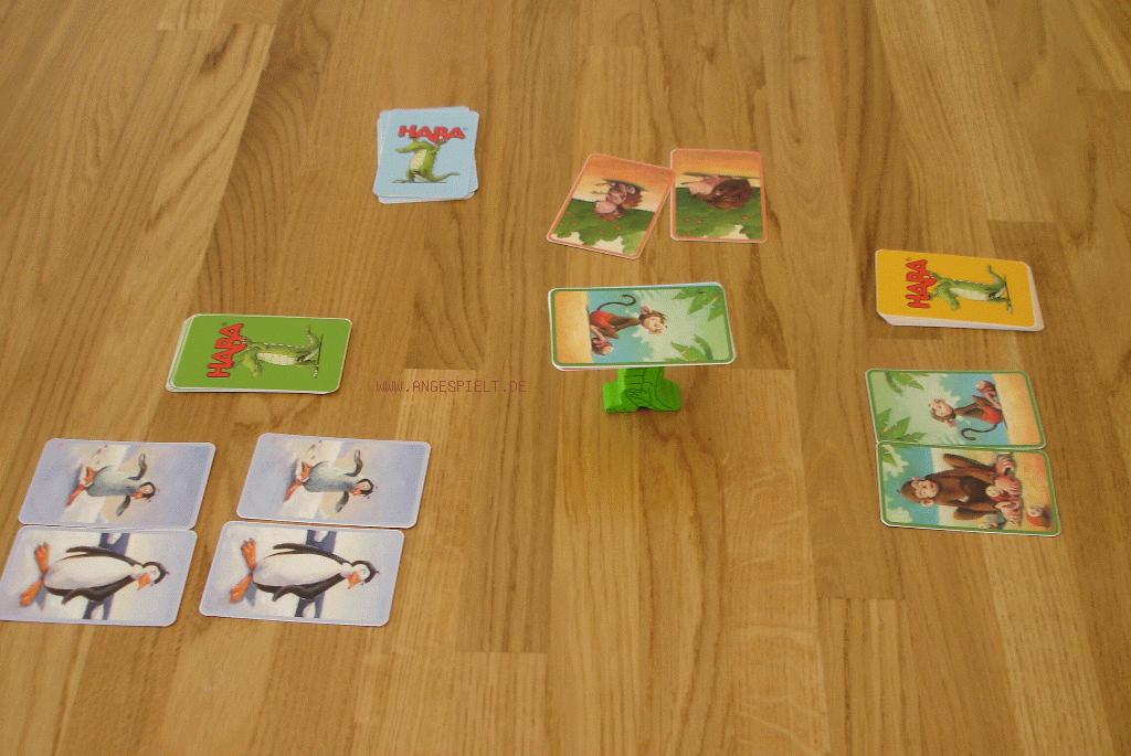 Jeder Spieler bekommt vierzehn Karten, die er gestapelt vor sich ablegt. Der Spieler an der Reihe nimmt eine Karte auf. Handelt es sich bei der Karte um ein Tierkind, legt der Spieler die Karte auf das in der Mitte stehende Krokodil. Wenn die Karten runterfallen muss der Spieler alle Karten aufnehmen. Zieht der Spieler eine Tiermutter, darf er sich einen Spieler aussuchen, der die Karte für ihn auf das Krokodil legt. Sobald ein Spieler alle Karten abgelegt hat, ist das Spiel zu Ende.