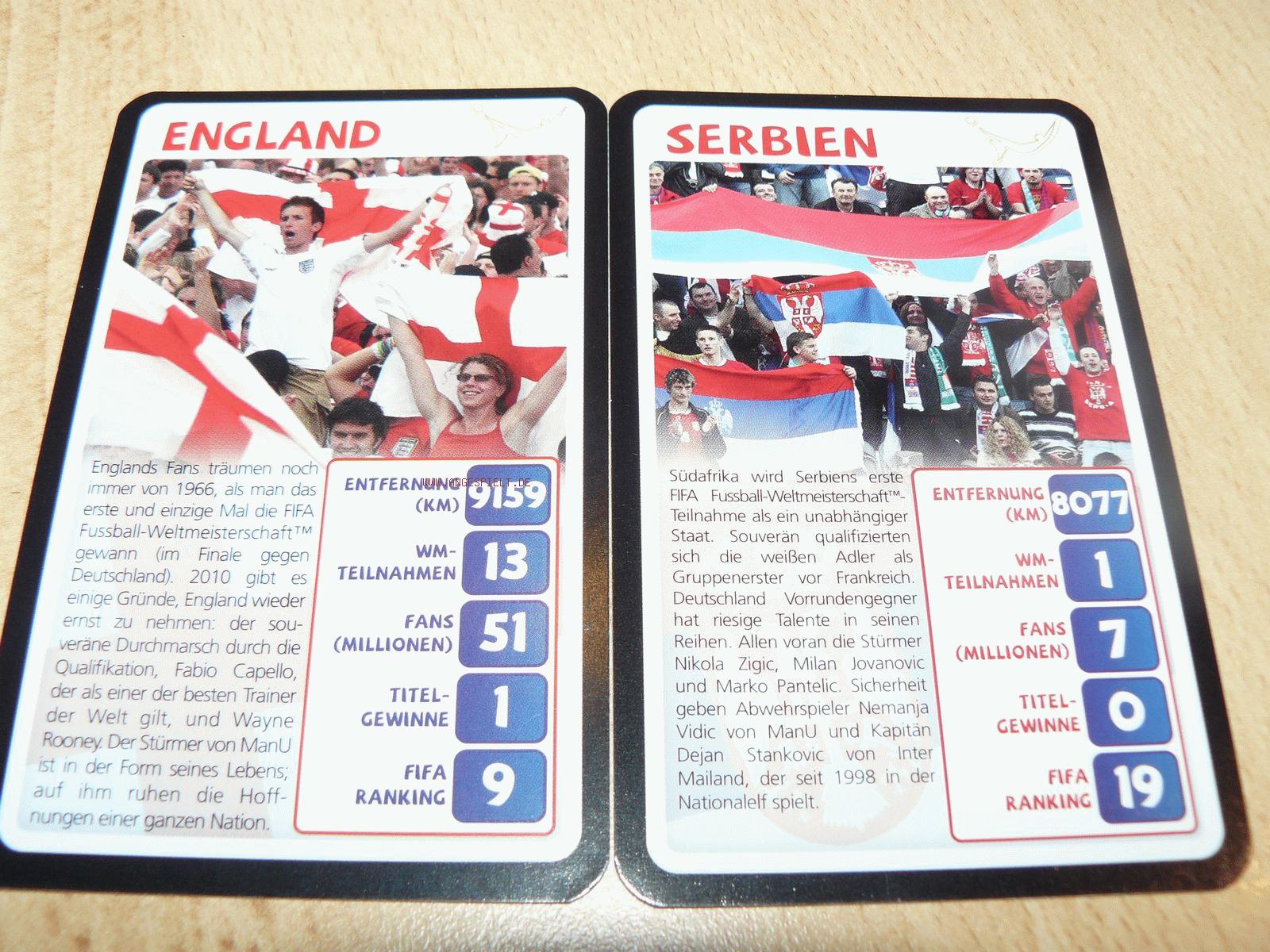 Wer gerne Fußball-Quartett spielt, ist mit dem FIFA World Cup gut bedient, da sämtliche Top-Nationen vertreten sind. Der Informationsgehalt der Kategorien und Fotos ist jedoch überschaubar.