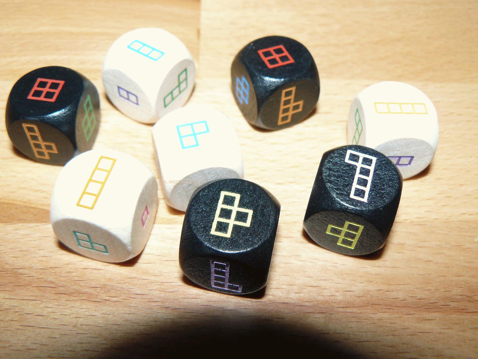 Es werden doppelt so viele Würfel verwendet, wie Spieler teilnehmen. Diese schnappen sich gleichzeitig jeweils zwei Würfel, auf denen Puzzleteile abgebildet sind. Auf dem Notizblatt jedes Spielers sind sechs nummerierte Flächen abgebildet -für jede Runde eine. Passen die Puzzlestücke noch in die aktuelle Fläche, dürfen sie eingezeichnet werden -Spiegelungen der Teile sind dabei erlaubt. Wer sie als Erster gefüllt hat, bekommt so viele Punkte, wie Spieler teilnehmen. Alle anderen machen mit entsprechend weniger Würfeln weiter, bis schließlich alle bis auf höchstens einen ihre Fläche ausgemalt haben. Danach beginnt die nächste Runde, in der erneut die gleiche Punktezahl eingesammelt werden kann. Nach dem letzten Durchgang gewinnt der Spieler mit den meisten Punkten.
