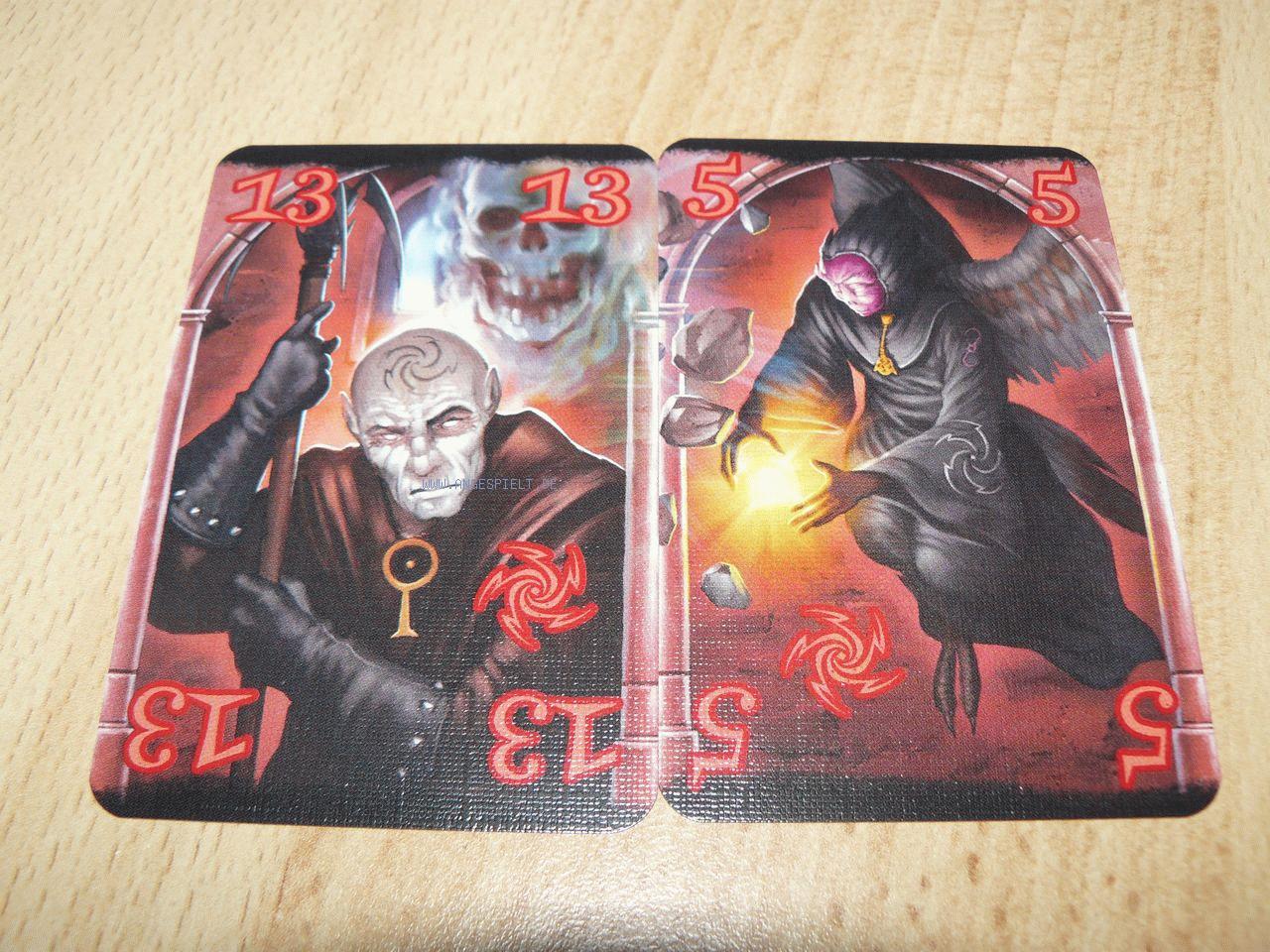 Und noch eine weitere Änderung: Bei der Verpackung handelt es nun um eine Standard-Kartenspiel-Box von Amigo. Das spart Platz, bedeutet aber auch, dass der Schwarzmagier jedes Mal auseinander genommen werden muss, da er zusammengesteckt nicht mehr hinein passt.